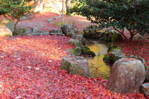 もみじの葉が落ち始め、見ごろのピークは少し過ぎてしまったようですが、散り敷いた葉がまるで真っ赤な絨毯のようで、とても綺麗な光景でした。